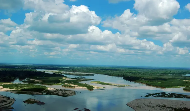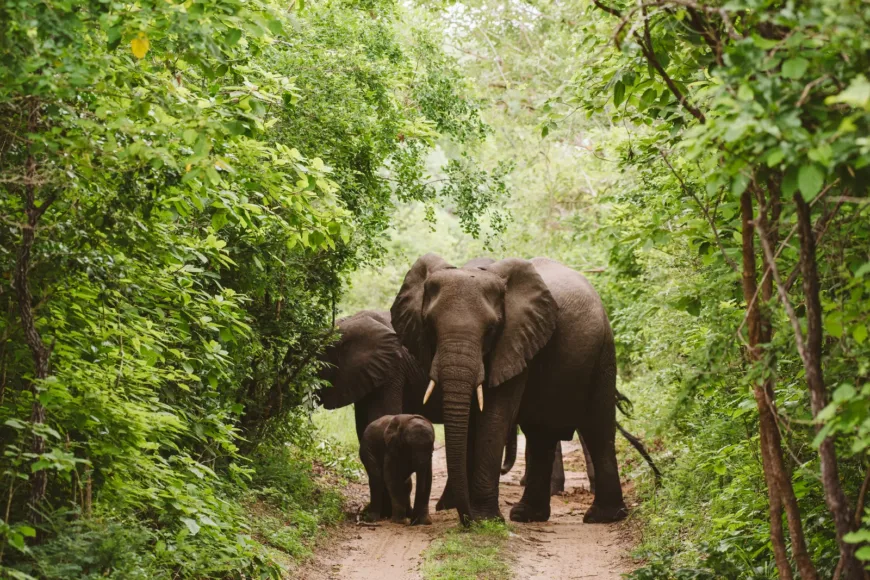 - Nasjonalparken dekker over 30 000 kvadratkilometer med savanne, skog og elvelandskap.